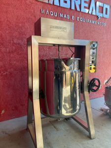 Batedeira com aquecimento elétrico , cap. 120 lts , toda em aço inox, com raspador , tampa cônica , tacho com resistência.